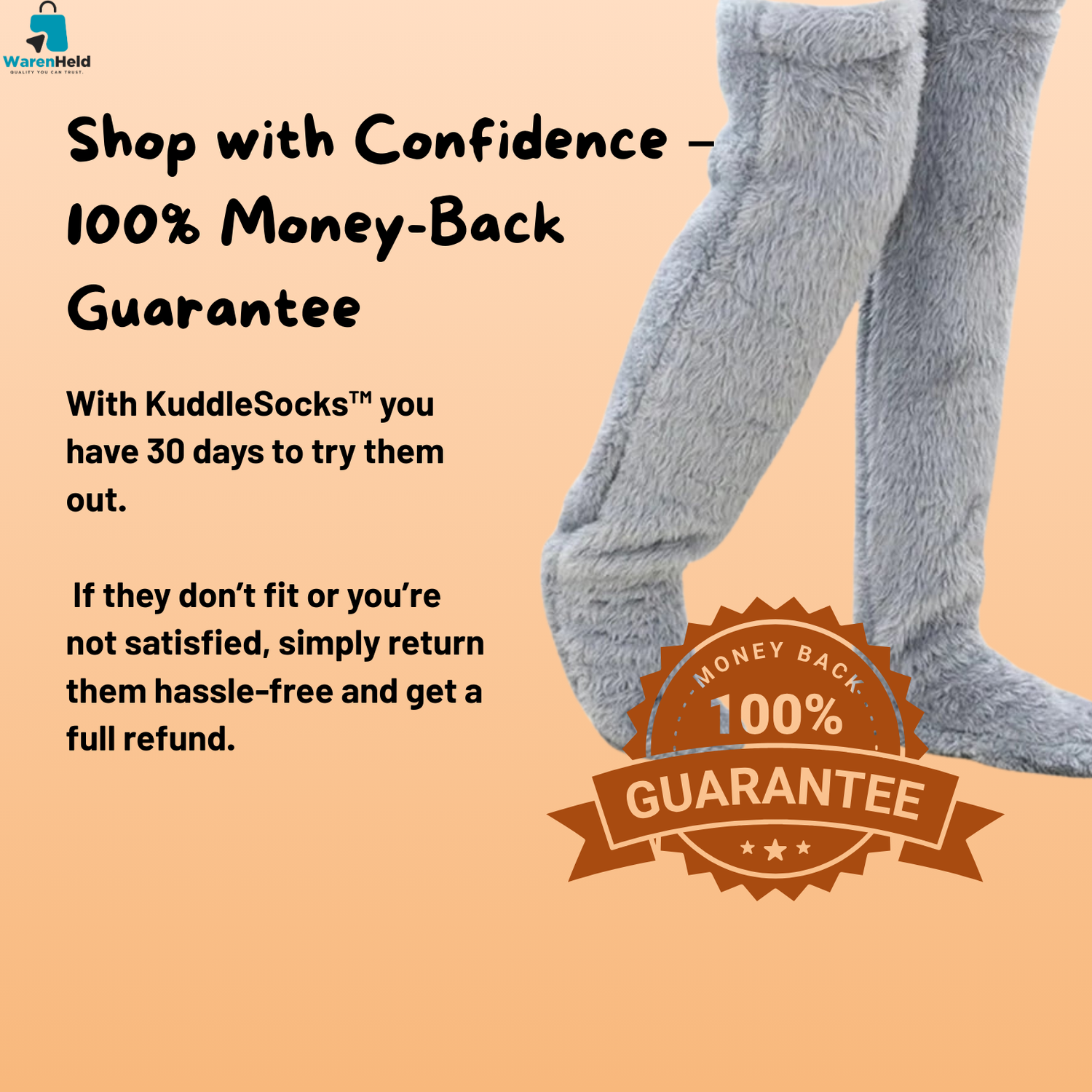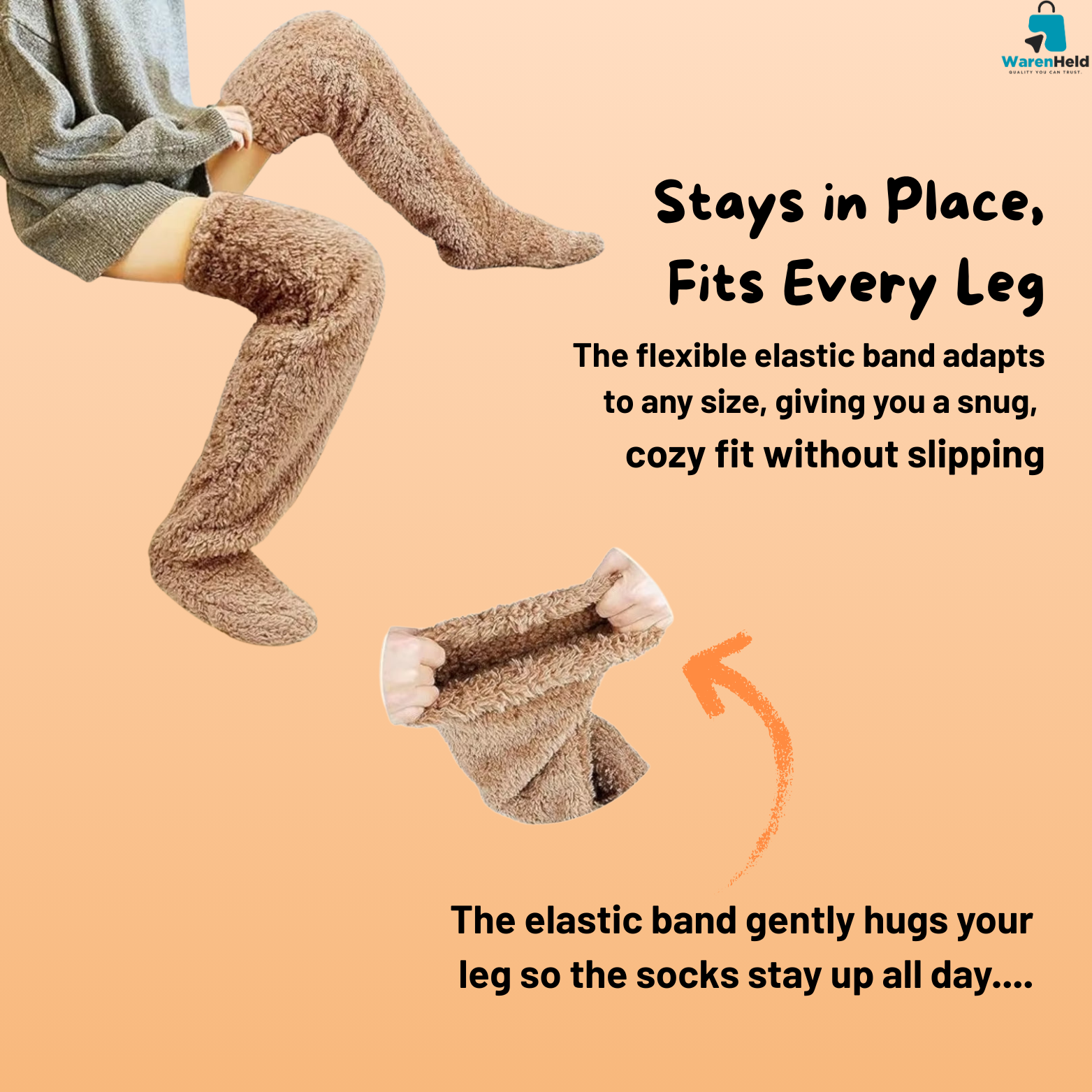 CuddleSocks™ are built different: plush over-knee design, gentle elastic band, and cloud-soft warmth that stays all day.