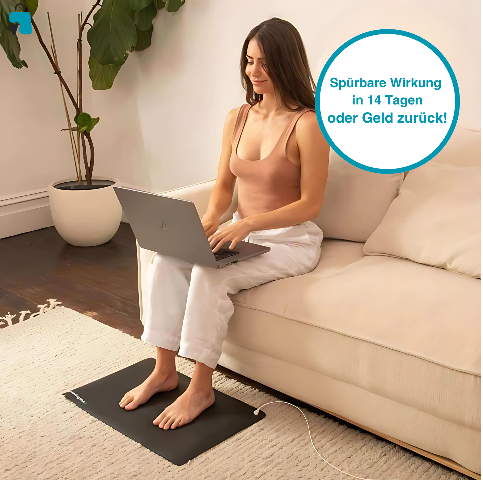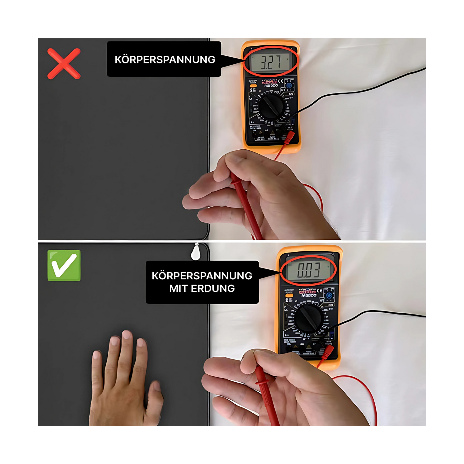 Die BioGround Erdungsmatte stellt dein elektrisches Gleichgewicht wieder her. Störfelder werden abgeleitet – mehr Energie, bessere Durchblutung & tiefere Erholung.