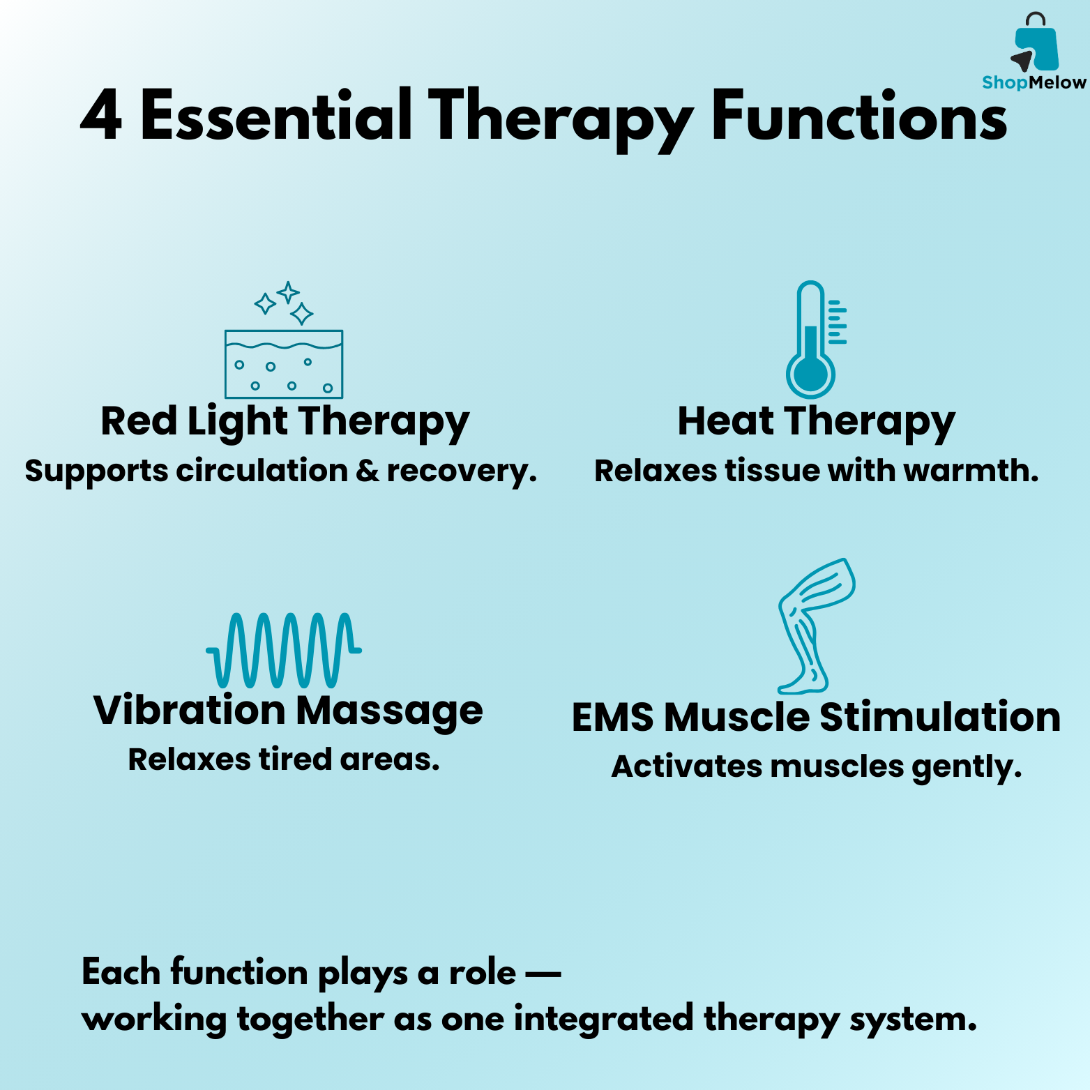 LymphFlow™ Pro combines gentle heat, red light, and EMS muscle stimulation to support circulation, activate muscles, and assist the body’s natural recovery processes — helping reduce heavy-leg discomfort over time.